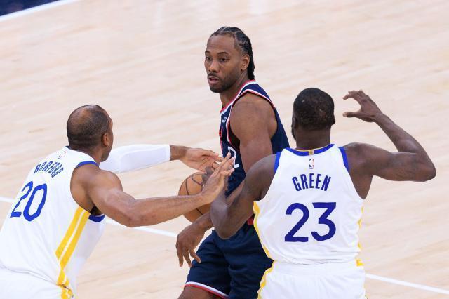 卢指导并非没有尝试为莱昂纳德排忧解难。比如在比赛最后50秒,勇士仅仅以120比117领先着3分,快船手握最重要的一次进攻球权。在快船的边线球战术里,卢指导希望由库里贴防的琼斯第一时间为莱昂纳德进行掩护,逼迫勇士换防。但格林居然硬生生地挤过了琼斯拼劲全力的掩护,全程挂在小卡身上,然后高高跃起完成抢断,送给了波杰姆斯基将分差扩大到两个回合的机会。